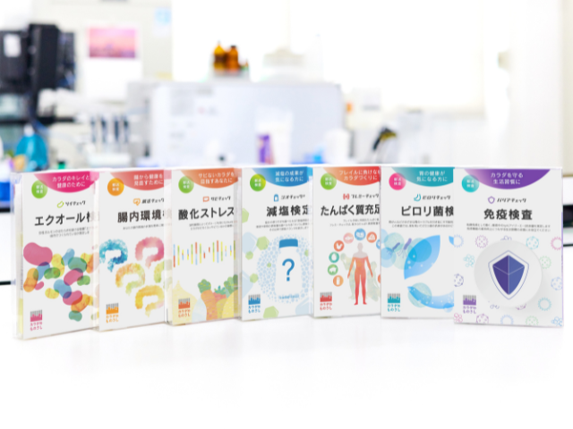 当社では、腸活チェックの他にも、エクオール検査キットや酸化ストレス検査、塩分チェックといった様々な検査キットの開発を手がけています。