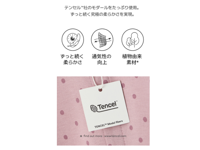 モダールは極細繊維で構成されており、繰り返し洗濯してもなめらかな素材感で、ベビー服には最適な素材です。