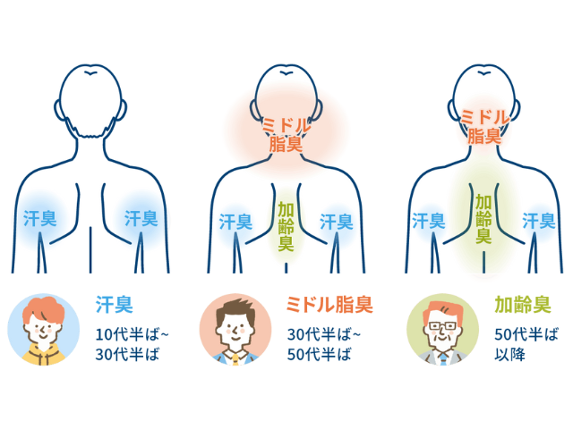 「はい。男性の体臭は、大きく三つの段階に分けて考えられます。20代をピークとした『汗臭』、男性特有で40代をピークとした『ミドル脂臭』、そして50代半ば以降の『加齢臭』です。