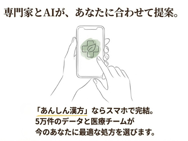 「あんしん漢方」は、スマホひとつで漢方薬の提案から購入までが完結するサービスです。