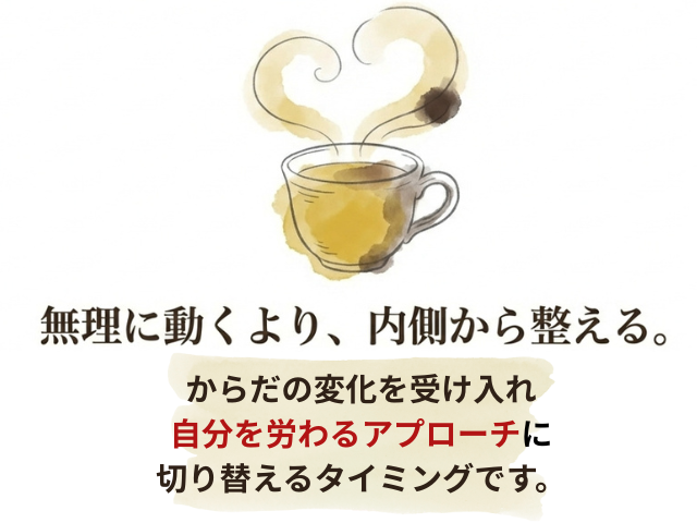 今、必要なのは無理にからだを動かすことではなく、まずは内側の「詰まり」を解消し、自然とエネルギーが巡るからだにしていくこと。