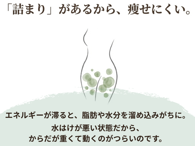からだのエネルギーが滞ることで血行も悪くなり、余計な水分が体内に停滞してしまうのです。