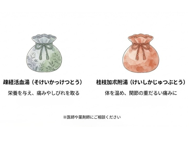 関節の軽い違和感やこわばりには、漢方薬が活用されることがあります。