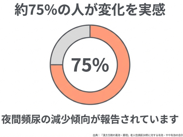 漢方薬の専門書には、中高年の頻尿に関する検討が掲載されており、夜間頻尿の減少傾向などが示されています。