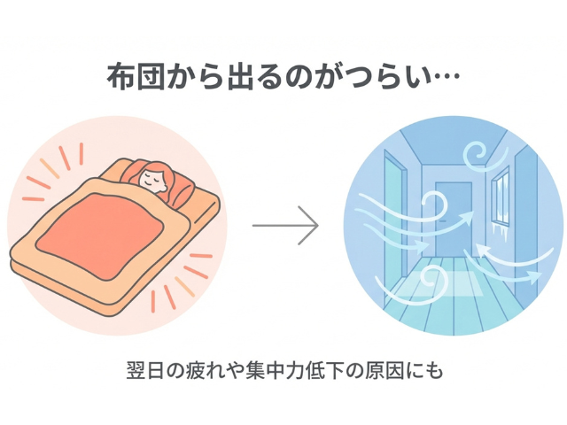 夜中に何度も起きる生活が続くと、寒さのストレスも重なってつらさが増していきます。