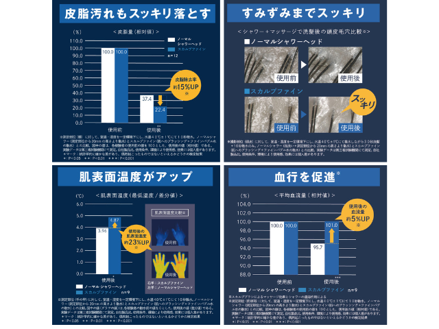 「はい、第三者機関による試験を実施しておりまして、通常のシャワーと比較して皮脂除去率が約15%アップ、頭皮の平均血流量が約5%アップしたというデータが出ています。