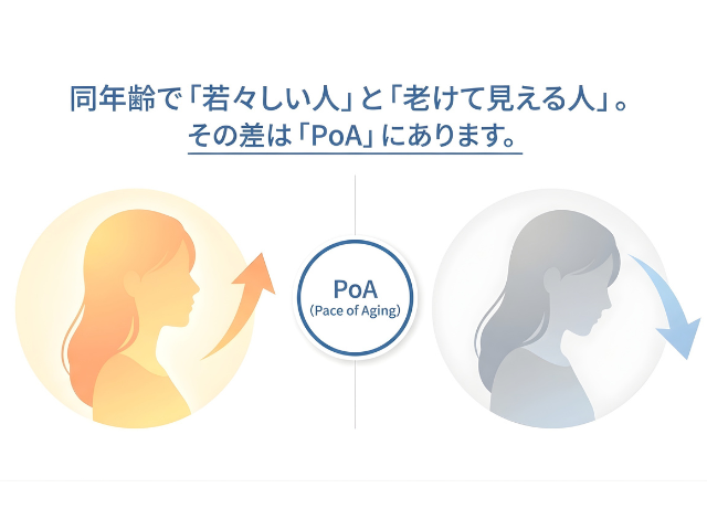 PoAは「老化のペース」を意味し、実年齢とは別に、からだの内側がどれほどの速さで老いているかを捉えようとするもの。いわば、「見た目年齢」を内側から科学的に裏付ける指標です。