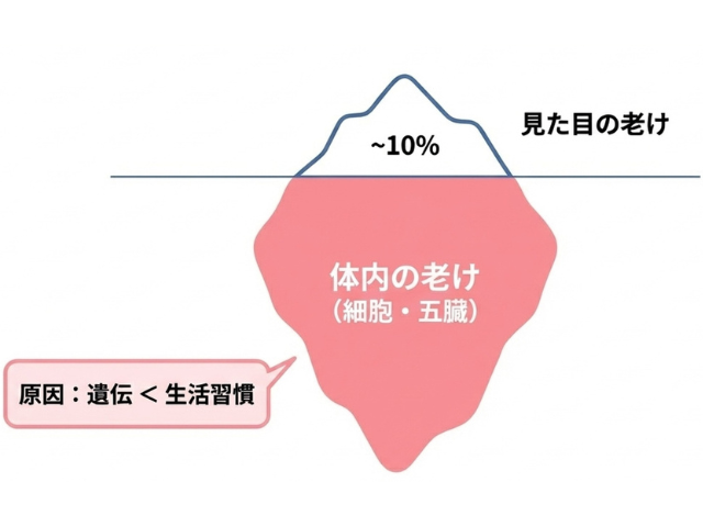 双子を対象にした研究では、寿命や見た目の若さは、遺伝よりも食事や睡眠、運動などの「生活習慣」による影響のほうが大きいことがわかっています。