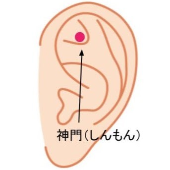 神門(しんもん):耳の上部にある、Y字型のくぼみ部分です。ストレスを抑え、精神を安定させます。